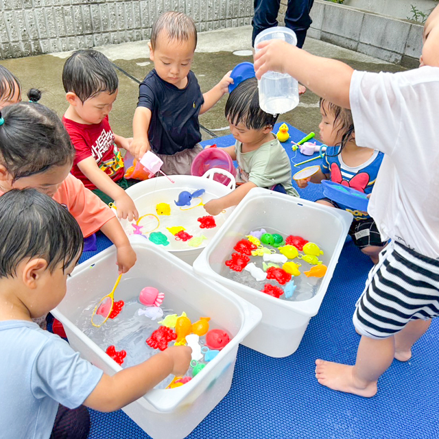 暑い中、毎日水遊びを楽しんでる子ども達です!